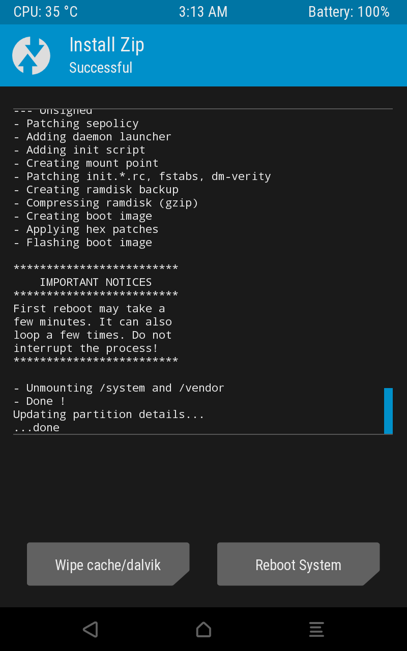 Magisk가 설치가 끝났다면