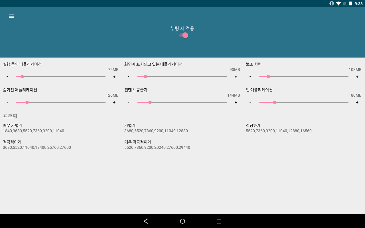나머지것들 부팅시적용으로 설정해놓았읍니다.