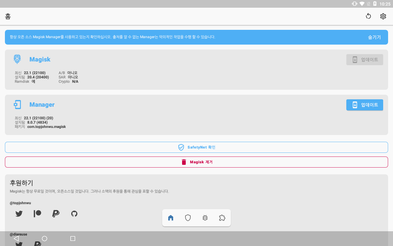 리커버리에서 설치했던 Magisk 매니저를 실행